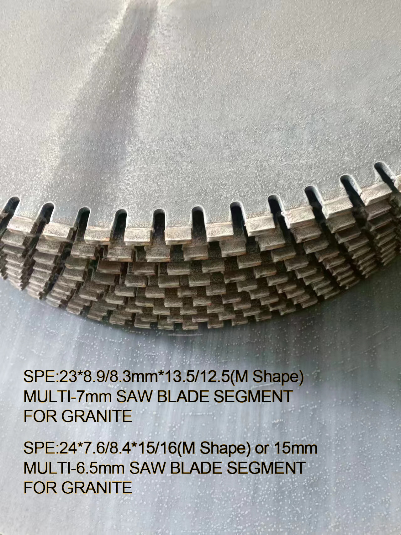 This premium diamond segment is specifically engineered for high-performance cutting of granite. Featuring a distinct M-Shape design, it ensures faster cutting speeds and improved stability during use. Available in two precision sizes-23*8.9/8.3*13.5/12.5mm and 24*7.6/8.4*15/16mm-it is compatible with both 6.5mm and 7mm multi-blade saw bases. Designed for durability and efficiency, it delivers clean cuts, long service life, and consistent performance in demanding granite processing applications.